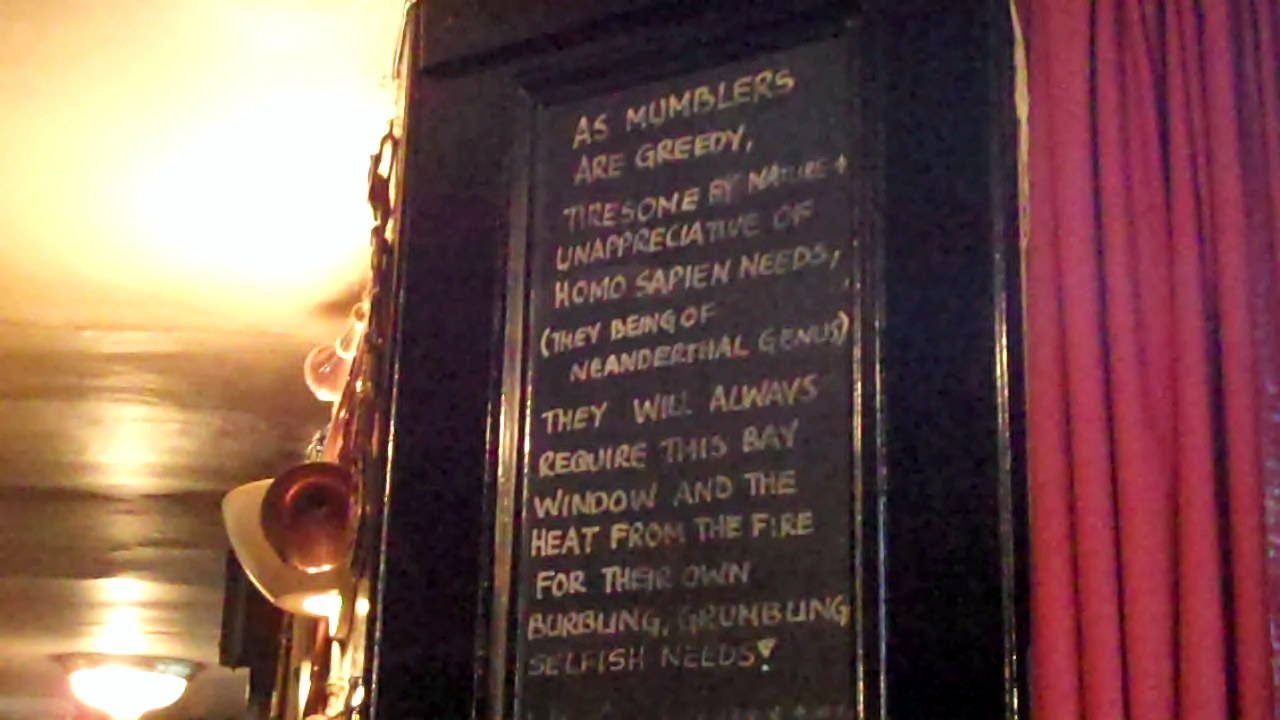 Brass and marble – bartops, beer taps, and ale handles liberally polished by the bartender at all available moments, except when having a pint with the customers of course.
