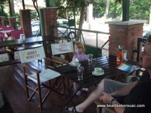 After a well deserved lunch of paninis, gelato (and a couple of beers for daddy) Ashley and I experienced our first Italian coffee.  Unbeknownst to us, we managed to commit a small faux pas by ordering our cappuccino after noon.  Apparently the Italians never order cappuccino after lunch… and never, never ever, after eating anything with tomatoes in it.  Oh well, if they didn’t know we were tourists before…….Riding back with the now anticipated traffic, we paused to look at the Colosseum .  Standing there, with Lily asleep in her bike seat, I looked at Ash and said, “It has been a good day in Rome sweetheart.  Just mind those marauding gangs of gypsy children, they’ll cut the bottom right out of your backpack and have your credit card buying a Vespa by nightfall.”