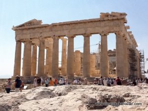 Seeking to placate our “Pireaus nerves” with some concerted sightseeing, today we rode a local bus into Athens in order to perform one of those pilgrimages that everyone should undertake, a visit to the Acropolis. Standing on an outcrop above the city center, the Acropolis is the home to one of the most recognizable ruins in the world, the Parthenon. Built by the Greeks before Jesus was a twinkle in Joseph’s eye (who are we kidding with the immaculate conception?) it was completed by a people without the benefit of machinery larger that a hammer and chisel, fossil fuels, or design systems like computers. And yet it combines complex architectural touches, like convex columns to counter the optical illusions common on such huge buildings resulting in them looking like the mad hatter’s house. To the Greeks, how something looks is very important. The sheer amount of stone required to build the buildings was staggering, how did they get it all up there? Slaves probably helped!