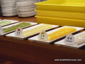 Another thing that didn’t disappoint were the malls.  I know, malls are everywhere, and I am not usually one to go seeking them out in foreign countries because I can get perfectly good ones at home, often for less money.  If I am going to purchase something in a foreign country it’s going to be a hand-carved soapstone elephant from a blind man in a tin shack, not a pair of pants from the Gap which would be exactly like a pair of pants from the Gap at home.   And although the Malaysian mall had very good prices at their Gap andtheir Crumpler store, we originally went there in pursuit of the most sought-after commodity in all tropical countries – air conditioning.  Like in Abu Dhabi, the burst of chill we experienced as those shiny automatic doors slid open was like mainlining the world’s best drug.   However, once we were sufficiently cool, it was the food court we’d come to see.  There was no crappy Sbarro or Orange Julius in this mall – the entire first floor was packed with various Asian delights – dim sum, noodle bars, Thai curries, Bento boxes, odd soups, substances literally labeled “fried product,” barbequed chickens with the heads still on, durian (the famous smelly fruit that supposedly tastes great) cakes and milkshakes, and various sizzling platters of unidentifiable meats mixed with rice and egg before your very eyes, thrown together with precision from a cook screaming in some unknown Asian language that makes you realize THAT’s where you truly are.  Then you get your can of Nestea Peach from the drink stall and eat your lunch with gusto, amid a hundred other happily slurping mall-goers.