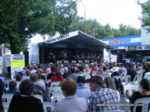 Taking our coagulated (I have always wanted to use that word in a post) milk product and picnic plate with us we repaired to the venerable vintners , John Gerhig and Sons (or maybe daughter – not really sure.  They produce wonderful wine in a tin-shed beside their house).  I was delighted to find that the organizing body of the Wangaratta Jazz Festival has hit upon a brilliant notion.  All wine was served as Allah intended, in stemmed glass-wear.  If the discerning Aussie imbiber didn’t want to go home with said glass he or she could return it for a nominal refund. This, I believe, is a notion that will land the council of the Rural City of Wangaratta in heaven for all eternity; you don’t expect us Aussies to drink our wine in plastic cups do you? What do you think we are, a bunch of filthy navvies?  Although I have a deep and abiding passion for John Gerhig’s 2006 RG Durif (a wine described to me by the winemaker’s wife as… like a cat’s arse; insert pursed lips here!) it was a glass of their fine Pinot Noir for me and Chenin Blanc for the ladies.