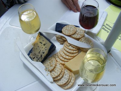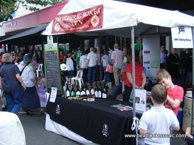 Our taste was satisfied by public performances, casual and convenient to the food stalls and wine.  Good food and wine is often seen as a birth-right to most people from this part of Victoria as, I suspect, it is for many other Australians lucky enough to hail from rural areas dominated by vineyards, cheese factories, olive groves, mustard farms and orchards, as we are here in the North-East.  After a wander around the market stalls, dragging Ashley away from whatever tie-dyed, homemade, little girl’s outfit (that some senior citizen had created in her backyard and hoped to sell at inflated prices) that caught her eye, we found our way to two stalls worthy of admiration.  In addition to stocking fine handmade cheeses, Boosey (pronounced boozy) Creek Cheese won a place in our heart by supplying, for the credible sum of 3 dollars, a picnic plate comprising of the aforementioned plate, knife, napkins and roll of fine crackers. After being sure to taste all of Boosey Creek’s wonderful fare we selected a slice of Tungamah Tasty (handmade cheddar) and the wonderful, beguiling Boosey Blue (a soft wax-aged blue vein cheese).